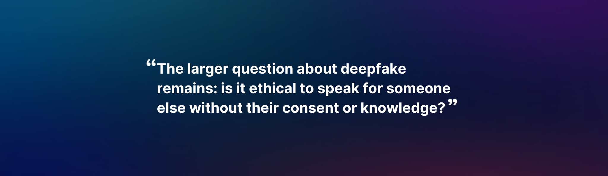 There has been a great deal of debate over the past few years about some of the moral implications of using deepfake processes for different ends. Beyond the creative potential of the technology that we discussed in part one of our piece, there are also some severe indications of danger and potential malfeasance.